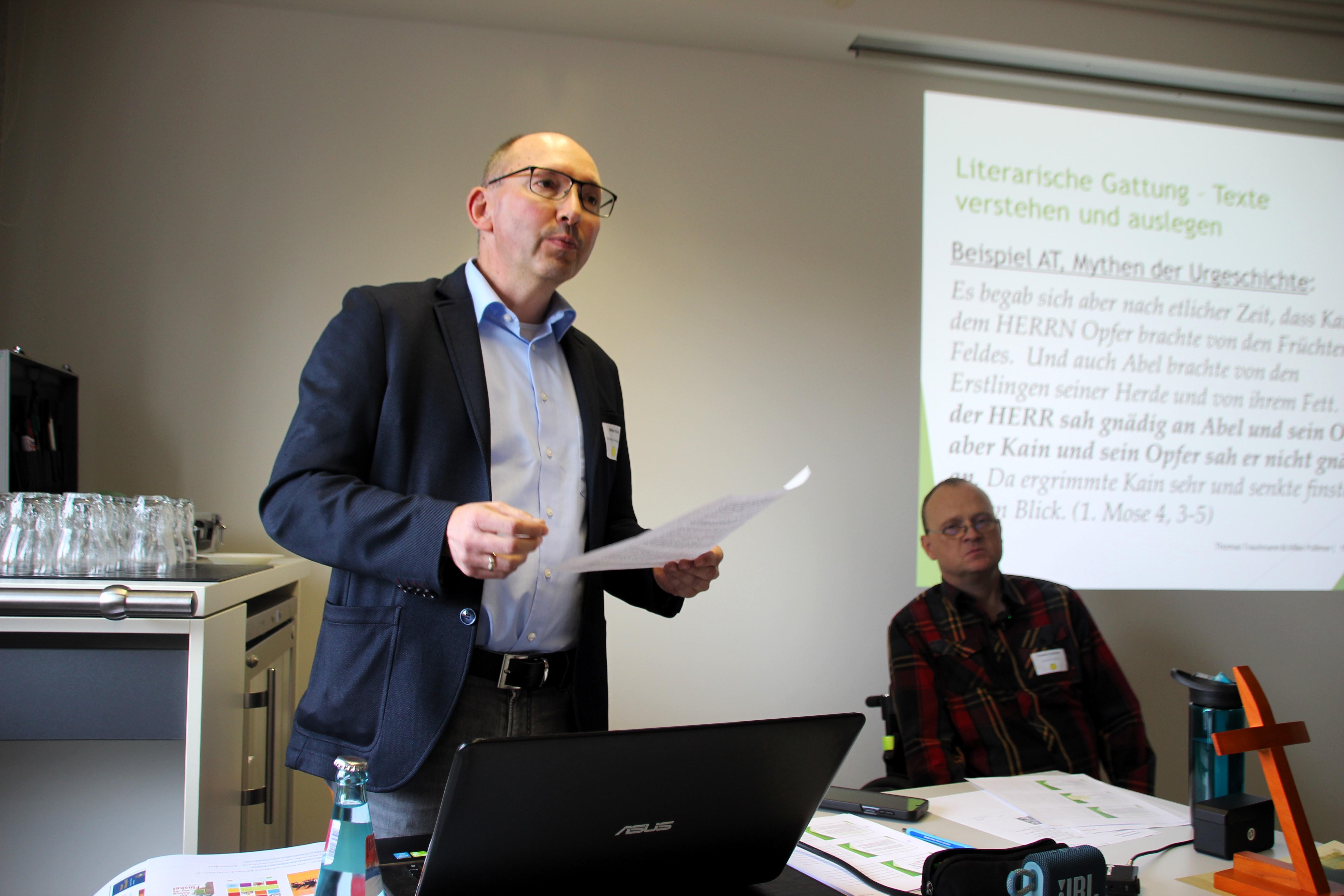 Ein weiteres Seminar beschäftigte sich mit Bibelverständnis und Bibelgespräche. Mike Pollmer und Thomas Trautmann sensibilisierten in ihrem Vortrag die Teilnehmer für den Umgang mit der Bibel. In der Auslegung von Bibelworten, die manchmal schwer verständlich sind, stellten sie die Fragen in den Mittelpunkt: Was will der biblische Kontext sagen und was kann er auf keinem Fall meinen. Sich Lösen von mythischen Vorstellungen oder die Nutzung von biblischer Sekundärliteratur kann dabei hilfreich sein. Interessant erschienen auch die praktischen Hinweise zur Durchführung eines Bibelgespräches, die Anforderungen an den Moderator ohne zu dominieren und zu belehren sowie zu Organisationsfragen hierfür.