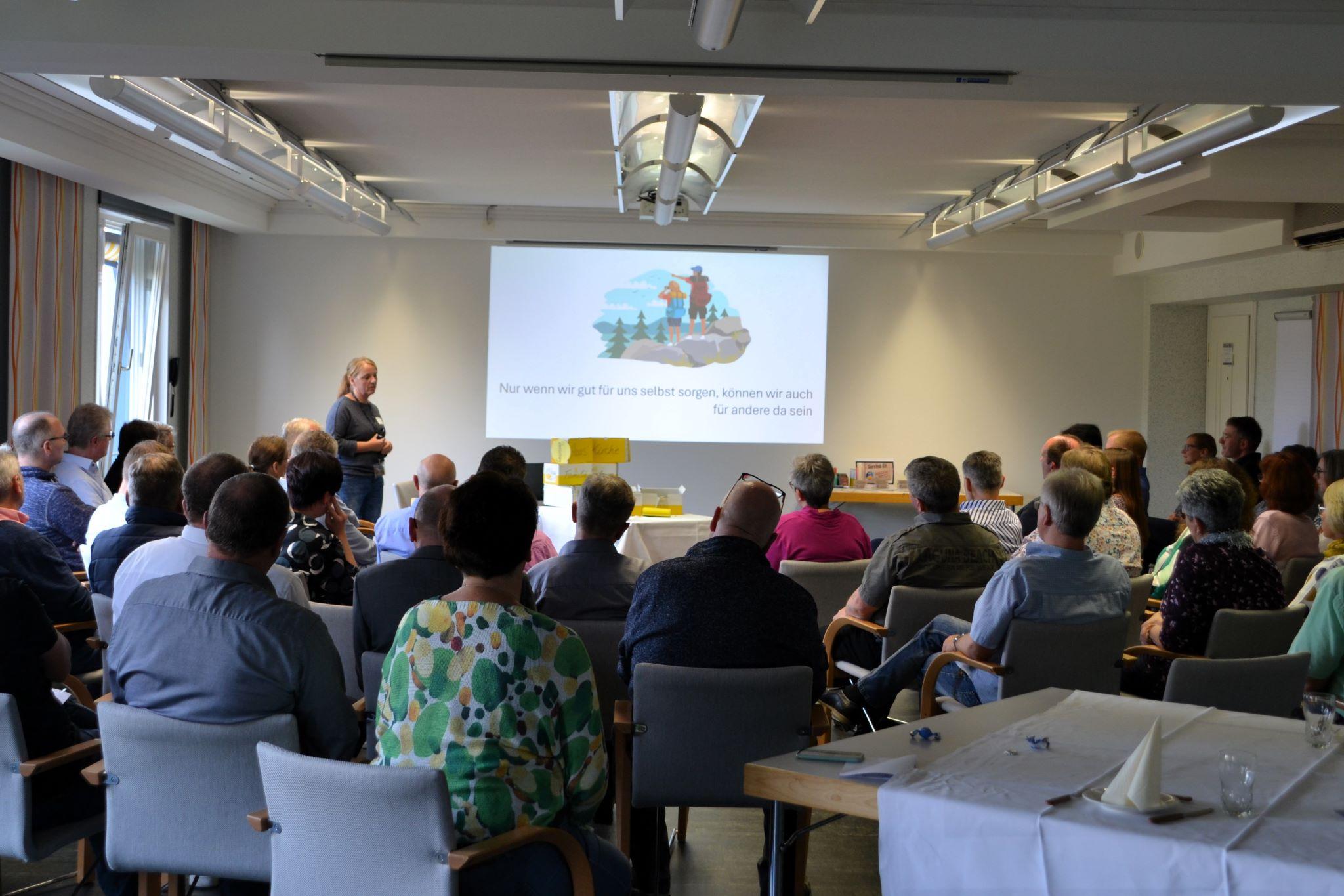Oftmals stoßen die Gemeindeleiter an Grenzen der Belastbarkeit. Wenn scheinbar alle aktuellen Aufgaben, Gottesdienstvorbereitungen usw. abgearbeitet sind, klingelt bestimmt das Handy und es kommt eine neue Situation hinzu, wo Rat, Hilfe oder organisatorische Aufgaben nötig sind. Einer der Workshops begann mit einem Rollenspiel, wo solche Situationen lebensnah dargestellt wurden. Im Terminkalender ist kaum noch Platz. Die Teilnehmer erhielten wertvolle Ratschläge von Kathleen Röhlig und Simone Möller, wie solche Situationen gemeistert werden können. Auch die Familie, der Beruf, Ruhezeiten, Freundschaften usw. dürfen nicht zu kurz kommen. Jeder braucht Zeit, für sich selbst zu sorgen. Nur dann kann man für andere sorgen. So lautet ein zusammenfassendes Fazit.