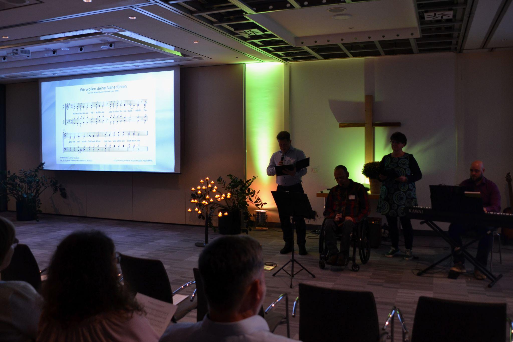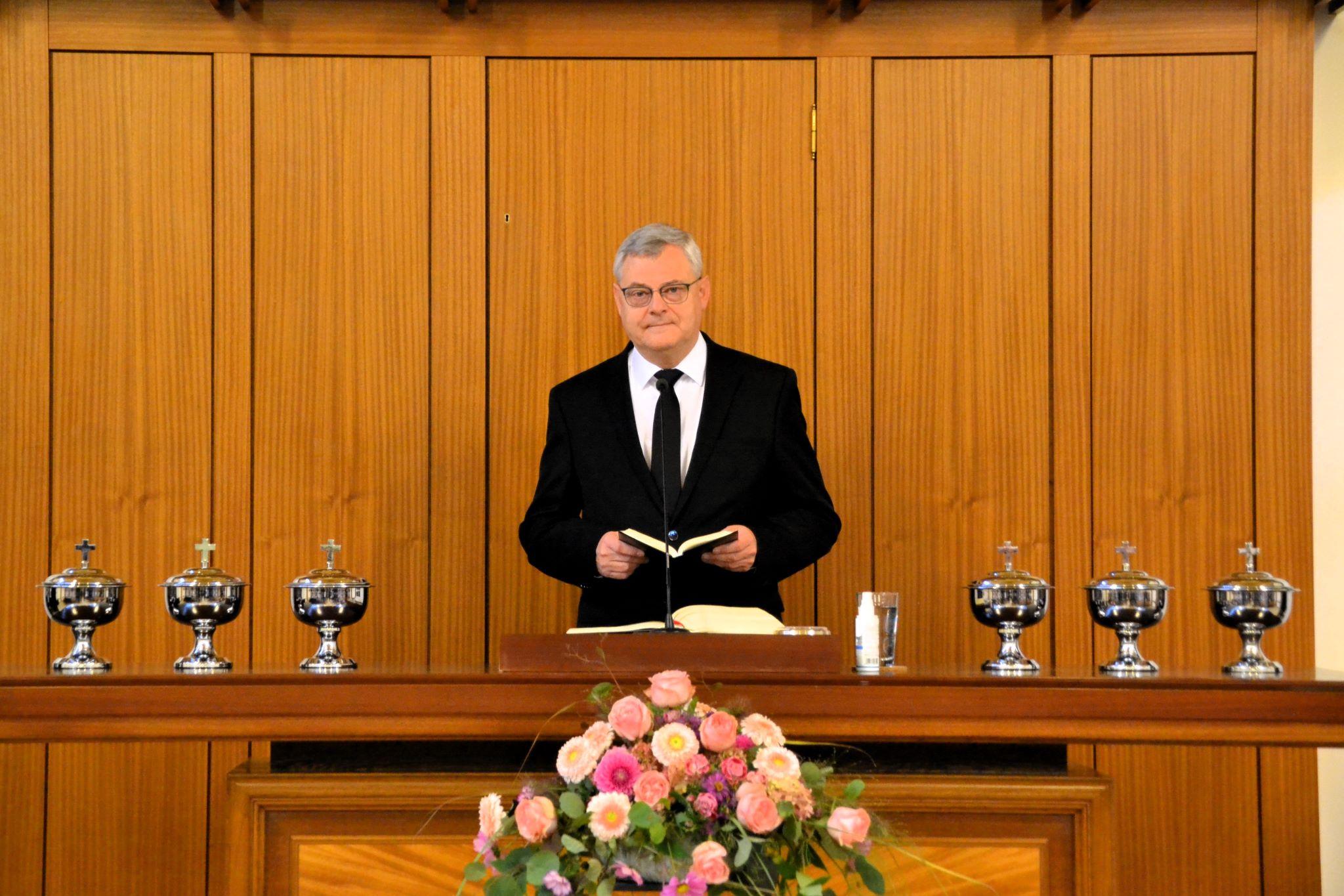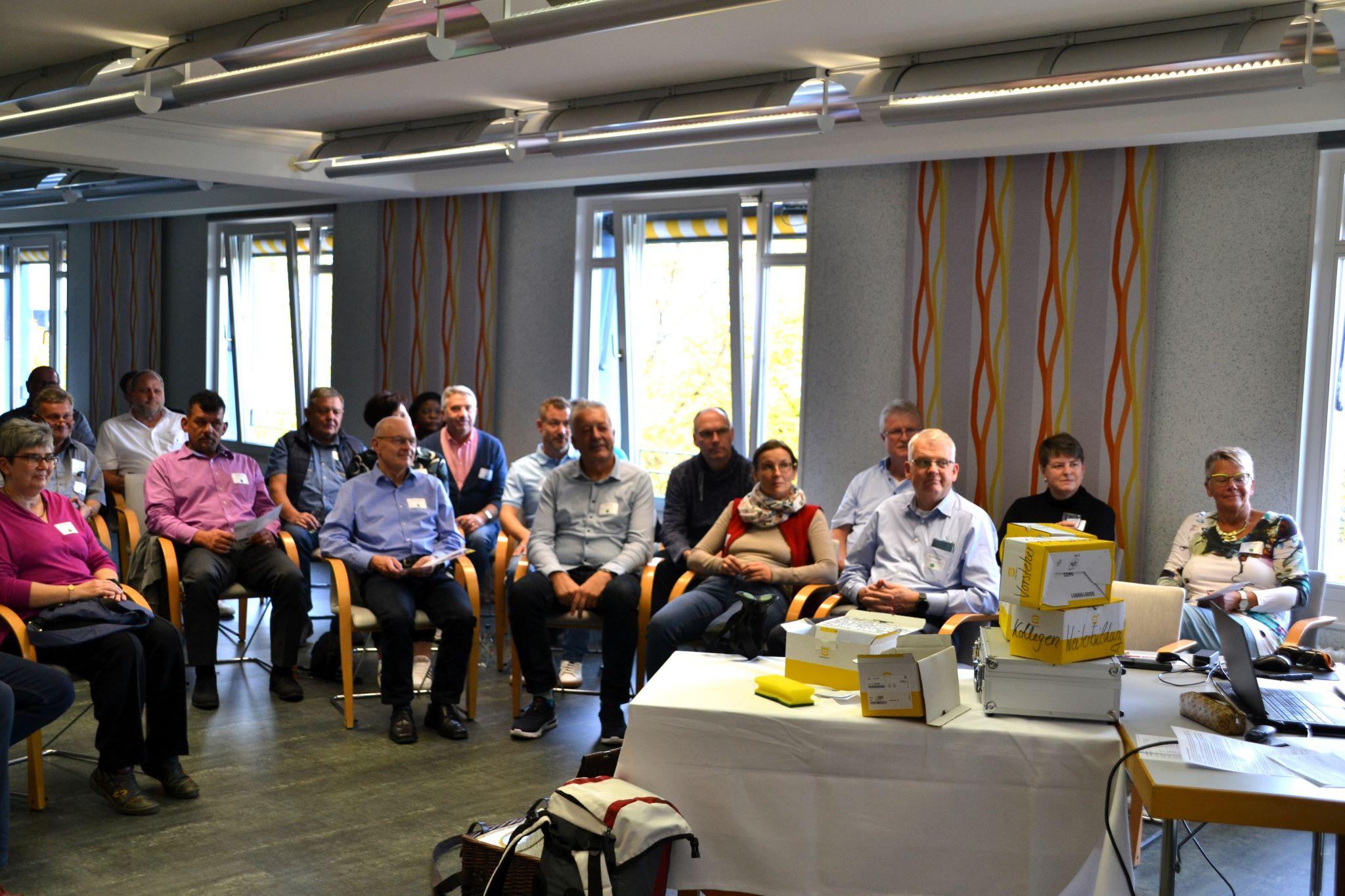 Apostel Ralph Wittich hat die Gemeindeleiter und deren Stellvertreter mit Ehepartnern aller 63 Gemeinden seines Arbeitsbereiches (Apostelbereich Süd) für ein Wochenende eingeladen. Zwischen dem Willkommenskaffee am Samstag in einem Hotel in der sächsischen Stadt Meerane und dem Abschiedskaffee am Sonntag in der Bezirksgemeinde Chemnitz lagen Stunden der Wertschätzung, professionelle Workshops, gemeinsamer Gesang, Abendandacht, Freiraum für Gespräche und Geselligkeit sowie Gottesdiensterleben in Chemnitz.