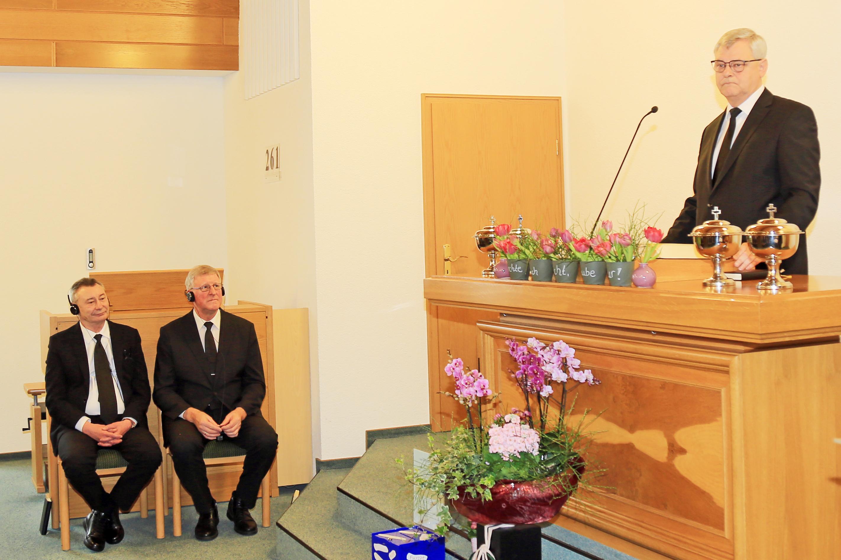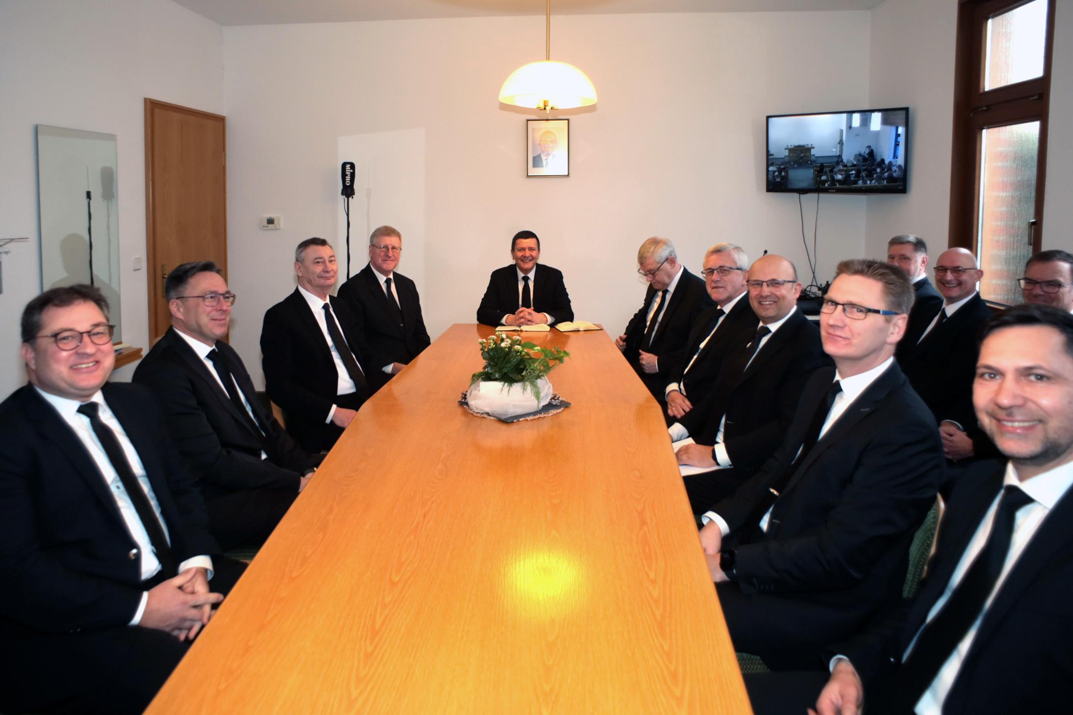 Begleitet wurde Bezirksapostel Heynes von den Aposteln Korbin, Wittich, Lasarew und Aktschurin.