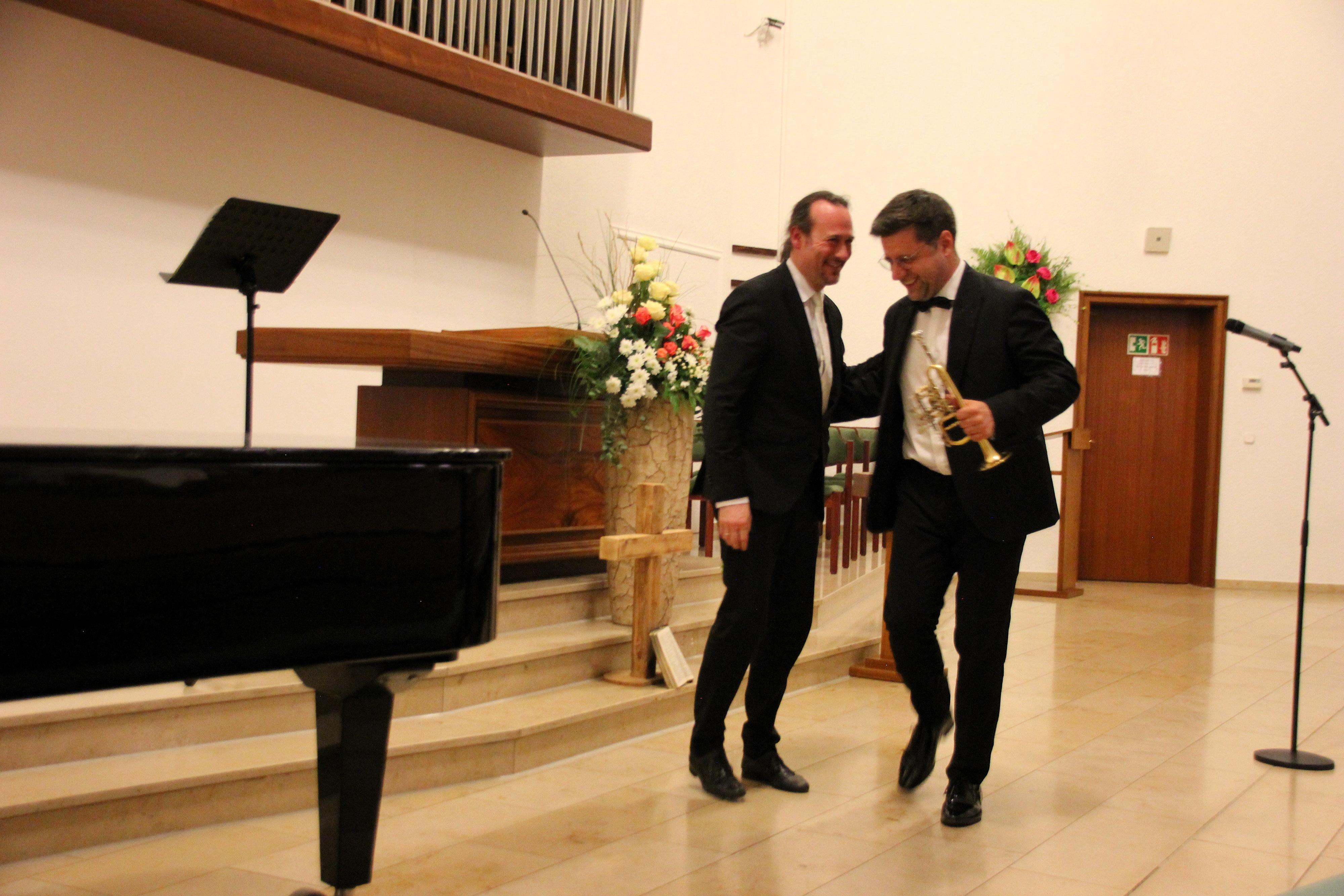 Mit beeindruckenden Fingerfertigkeiten entlockten der Dresdner Frauenkirchenkantor Matthias Grünert an der Pfeifenorgel und der international bekannte Solotrompeter der Sächsischen Staatskapelle, Prof. Helmut Fuchs, ihren Instrumenten eine beeindruckende Vielfalt an Klangfarben und Stimmungen. Die unterschiedlichen Orgelregistrierungen passten sich dabei einfühlsam und harmonisch an die Trompetenklänge an. Insgesamt kamen vier verschiedene Blechblasinstrumente bis hin zum Flügelhorn zum Einsatz.