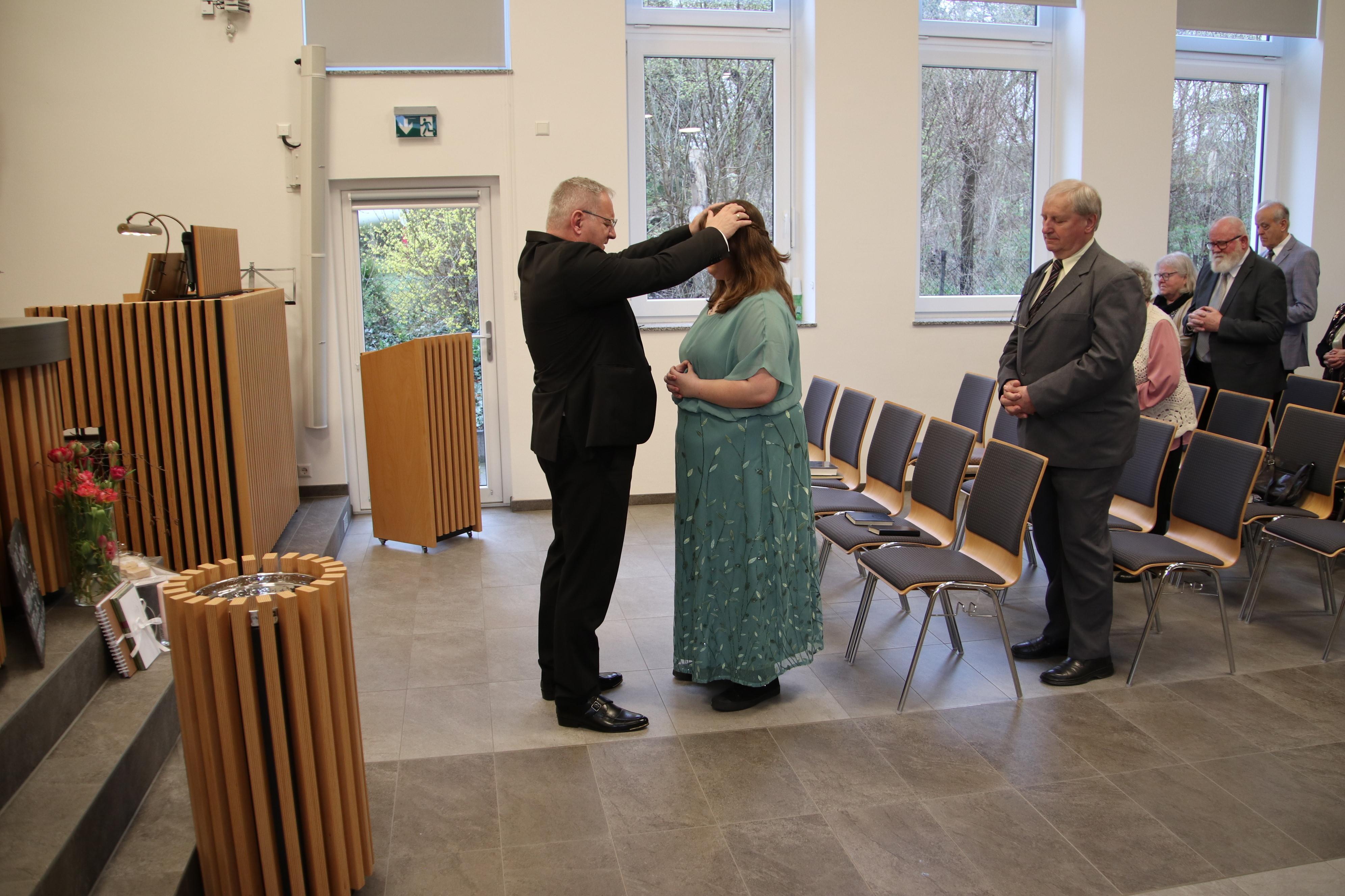 Auf die Segenshandlung wurde die Gemeinde durch Sologesang mit Klavierbegleitung eingestimmt. Danach verlas Diakonin Jasim Huck zunächst den jährliche Konfirmandenbrief des Stammapostels Jean-Luc Schneider, bevor Priester Karth den Konfirmationssegen spendete.