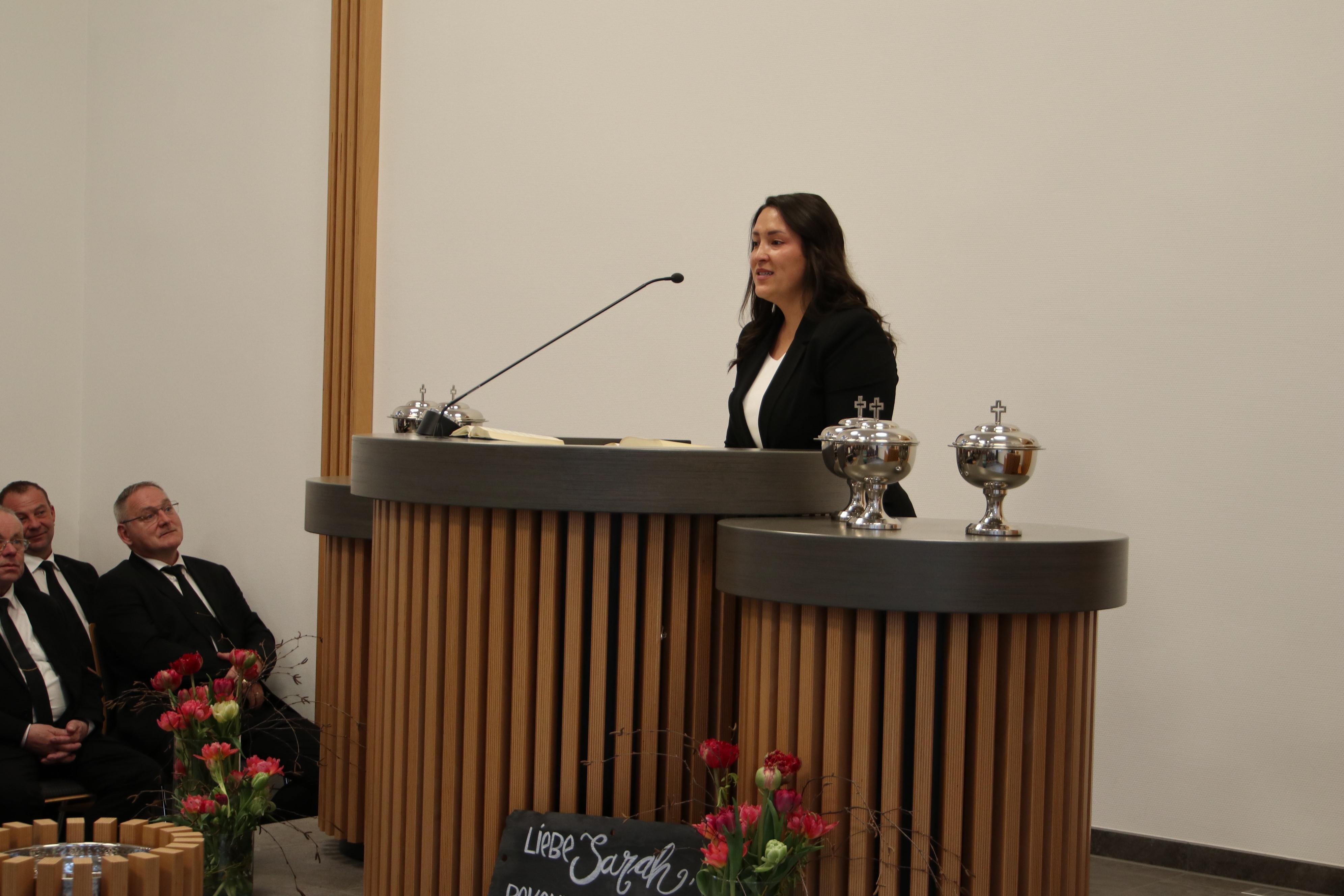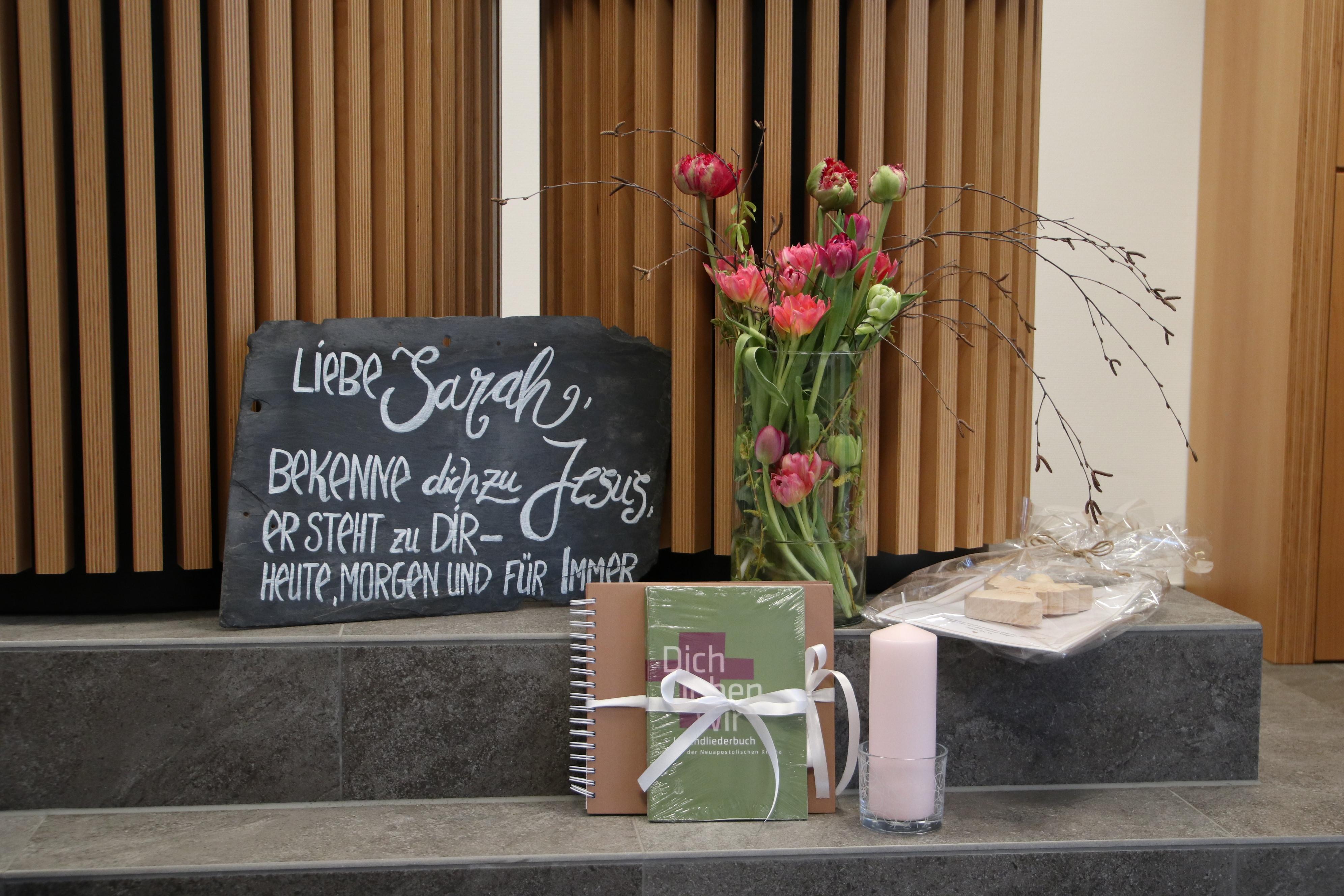Anschließend sang ein Chor aus Jugendlichen, Jugendseelsorgern und Lehrkräften das Lied „Ins Wasser fällt ein Stein“ und begrüßte Sarah im Kreis der Jugend. Nach der Feier des Heiligen Abendsmals und Abschluss des Gottesdienstes bedachten viele der Anwesenden die junge Glaubensschwester mit Glückwünschen und Geschenken.