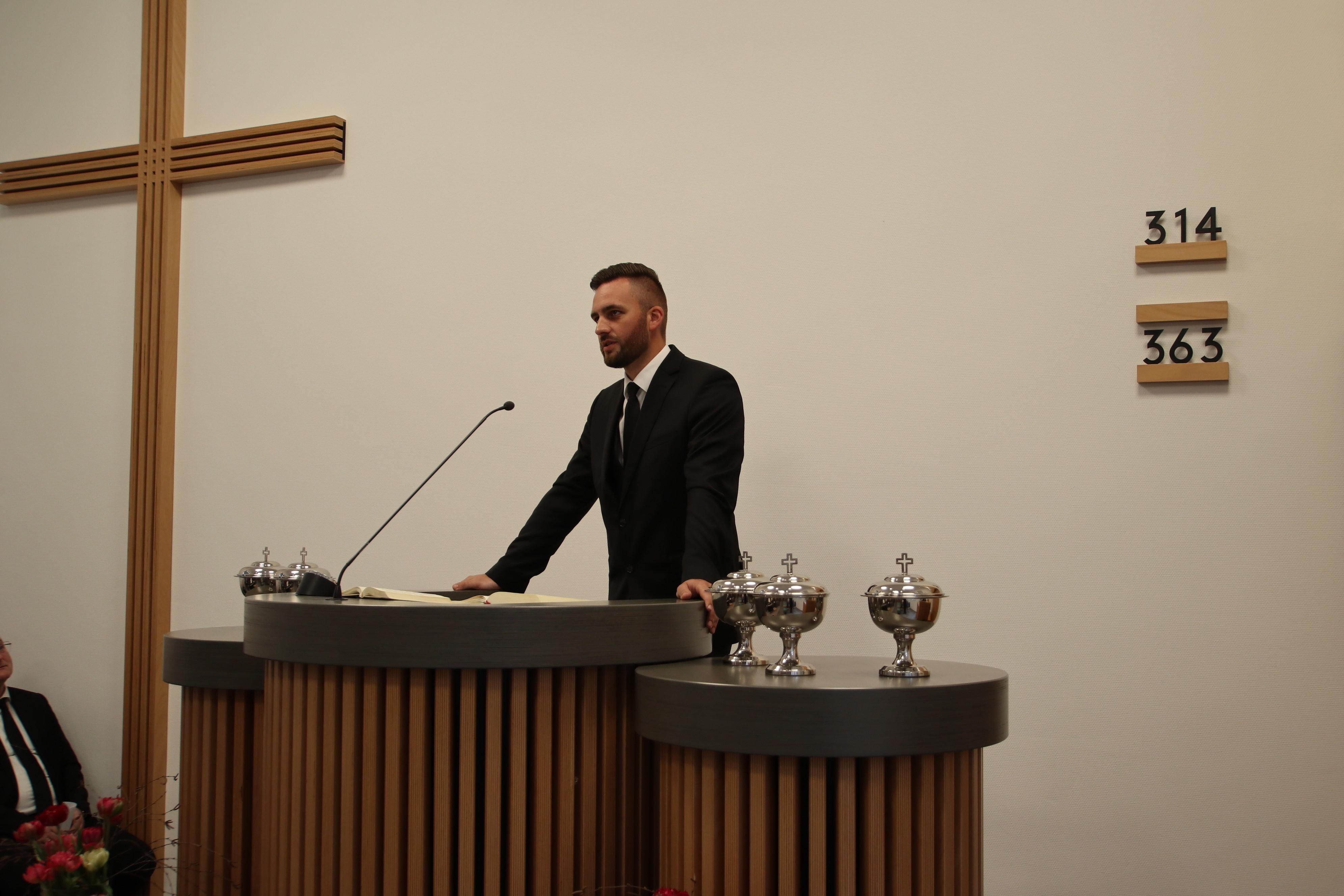 Auf die Segenshandlung wurde die Gemeinde durch Sologesang mit Klavierbegleitung eingestimmt. Danach verlas Diakonin Jasim Huck zunächst den jährliche Konfirmandenbrief des Stammapostels Jean-Luc Schneider, bevor Priester Karth den Konfirmationssegen spendete.